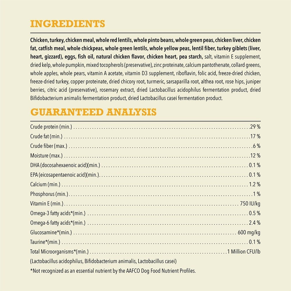 | Protein source | Chicken, Turkey, Eggs |