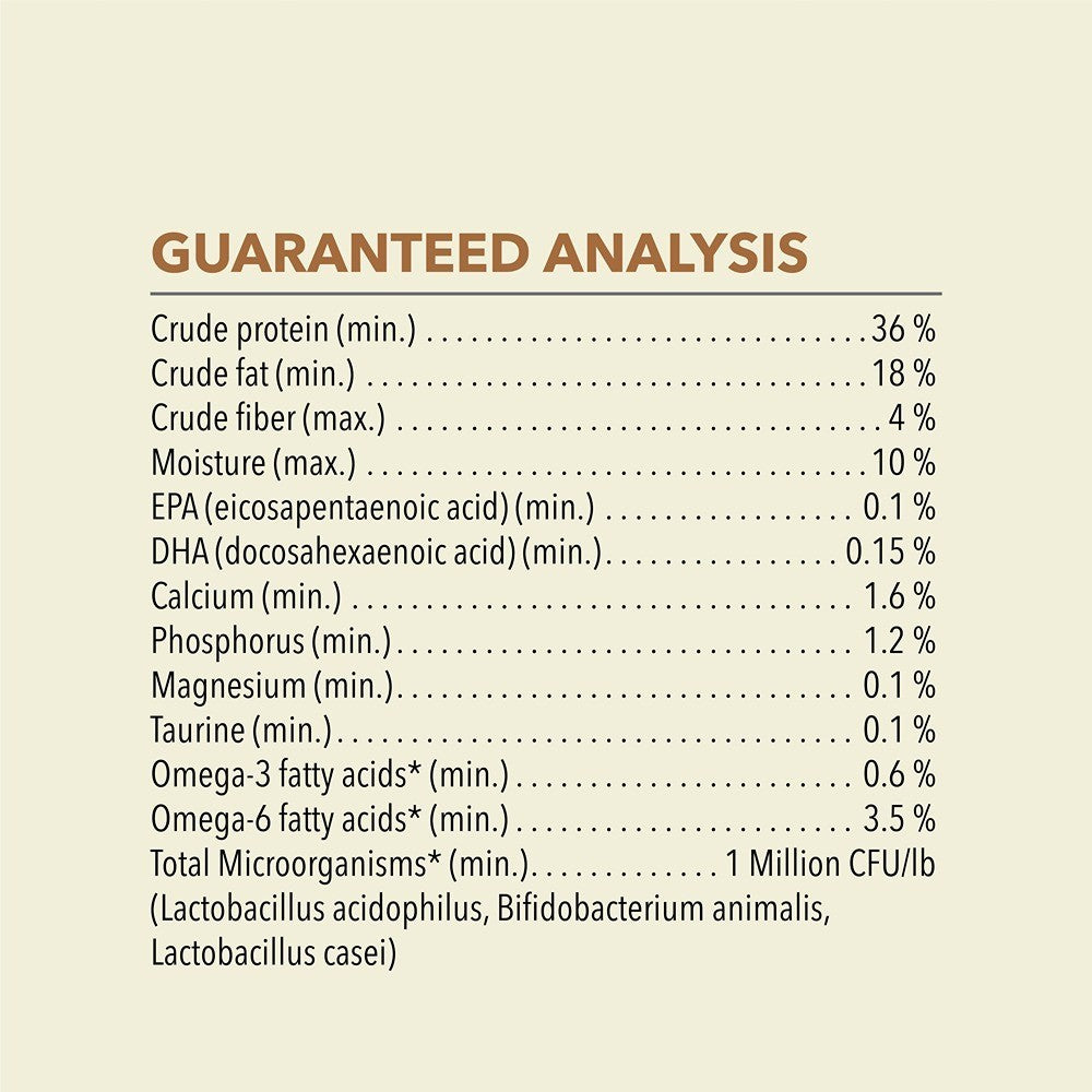 Containing 75% quality animal ingredients, this recipe provides natural protein to fuel your cat’s daily energy needs. Added fibre and probiotics help promote digestive balance, while taurine, EPA, and DHA contribute to heart and eye health. Omega-3 and omega-6 fatty acids support skin and coat vitality, giving your cat a healthy appearance inside and out. Suitable for adult cats of all breeds, this recipe is ideal for supporting digestion, skin, and heart health. It is not recommended for kittens or cats requiring a restricted-protein diet.