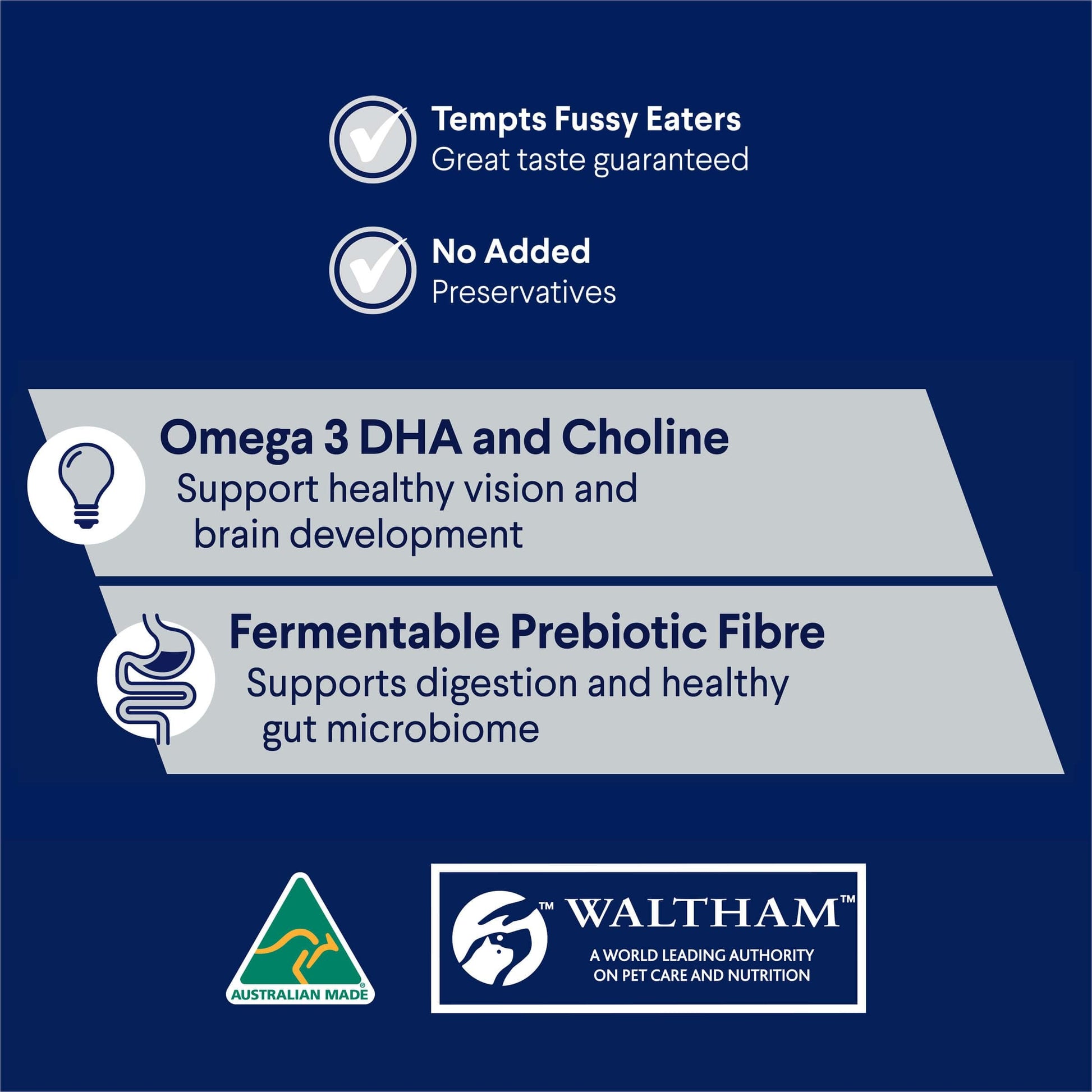 Formulated in Australia using over 45 years of scientific research, this wet food includes DHA and choline to support brain development, along with antioxidants to help build a strong immune system. Zinc and linoleic acid promote healthy skin and a shiny coat, while controlled mineral levels and high digestibility support urinary tract health and reduce stool odour. Suitable for puppies of all breeds, it’s ideal for supporting growth, brain development, immunity, and skin health. Not recommended for adult or senior dogs outside of pregnancy or lactation.