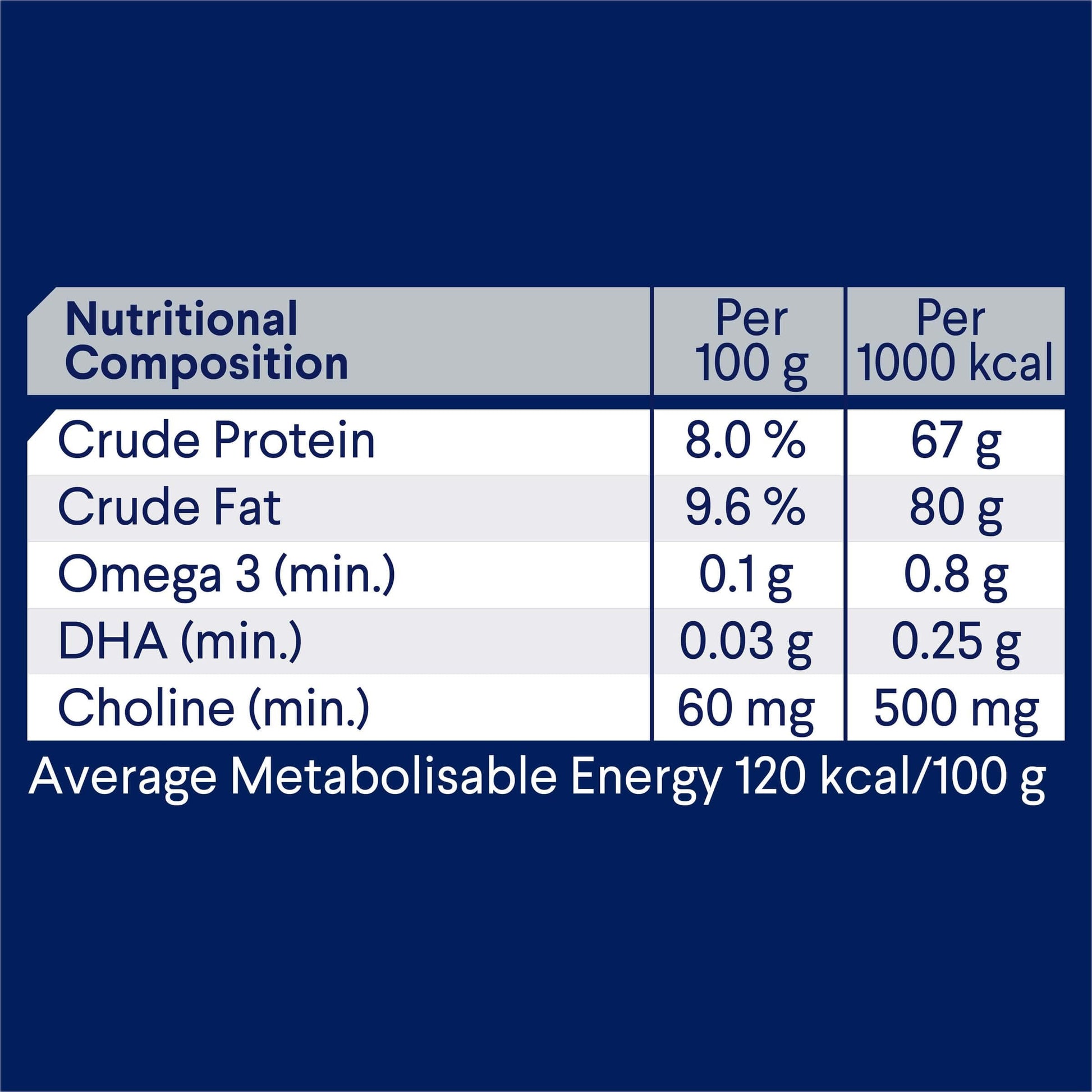 | Health needs | Growth, Brain development, Immune system, Skin & coat, Urinary health |