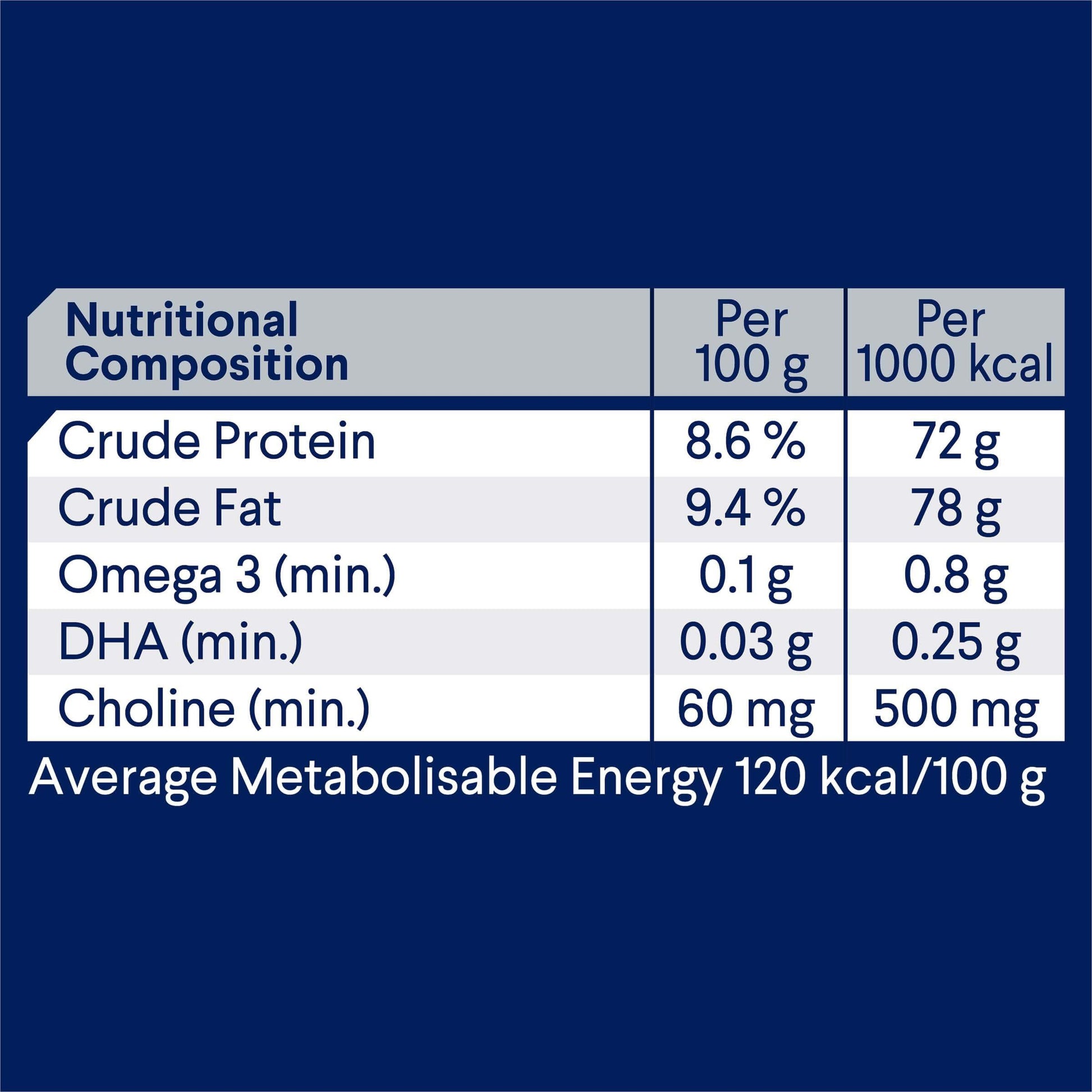 | Health needs | Immune system, Cognitive development, Skin & coat, Digestion, Urinary health |