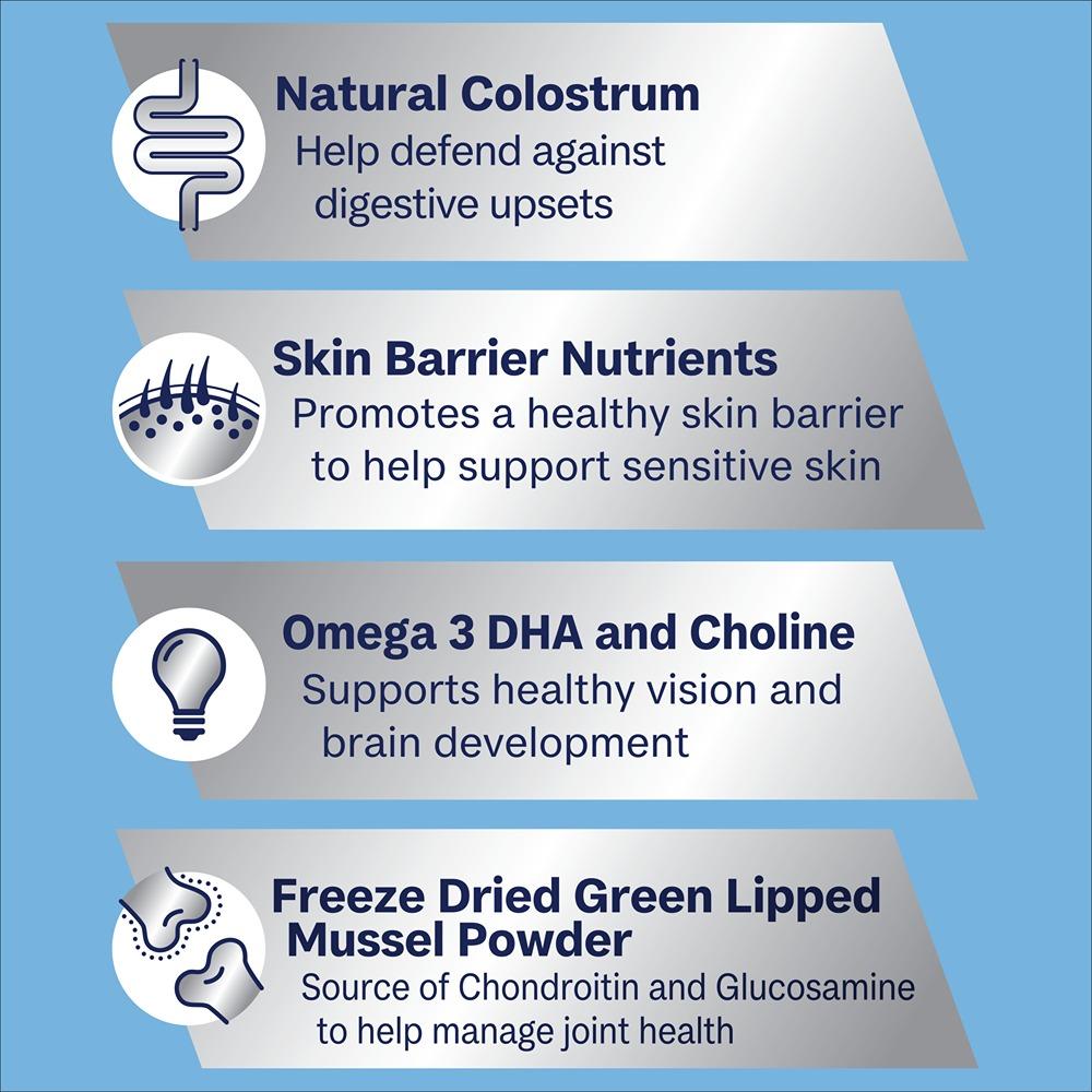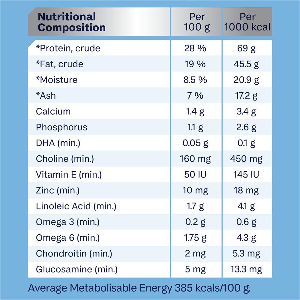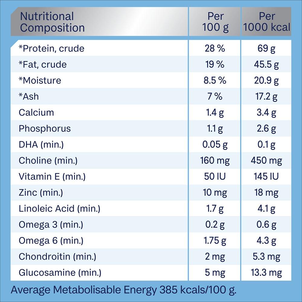 | Health needs | Growth, Joint support, Brain development, Digestion, Skin & coat health |