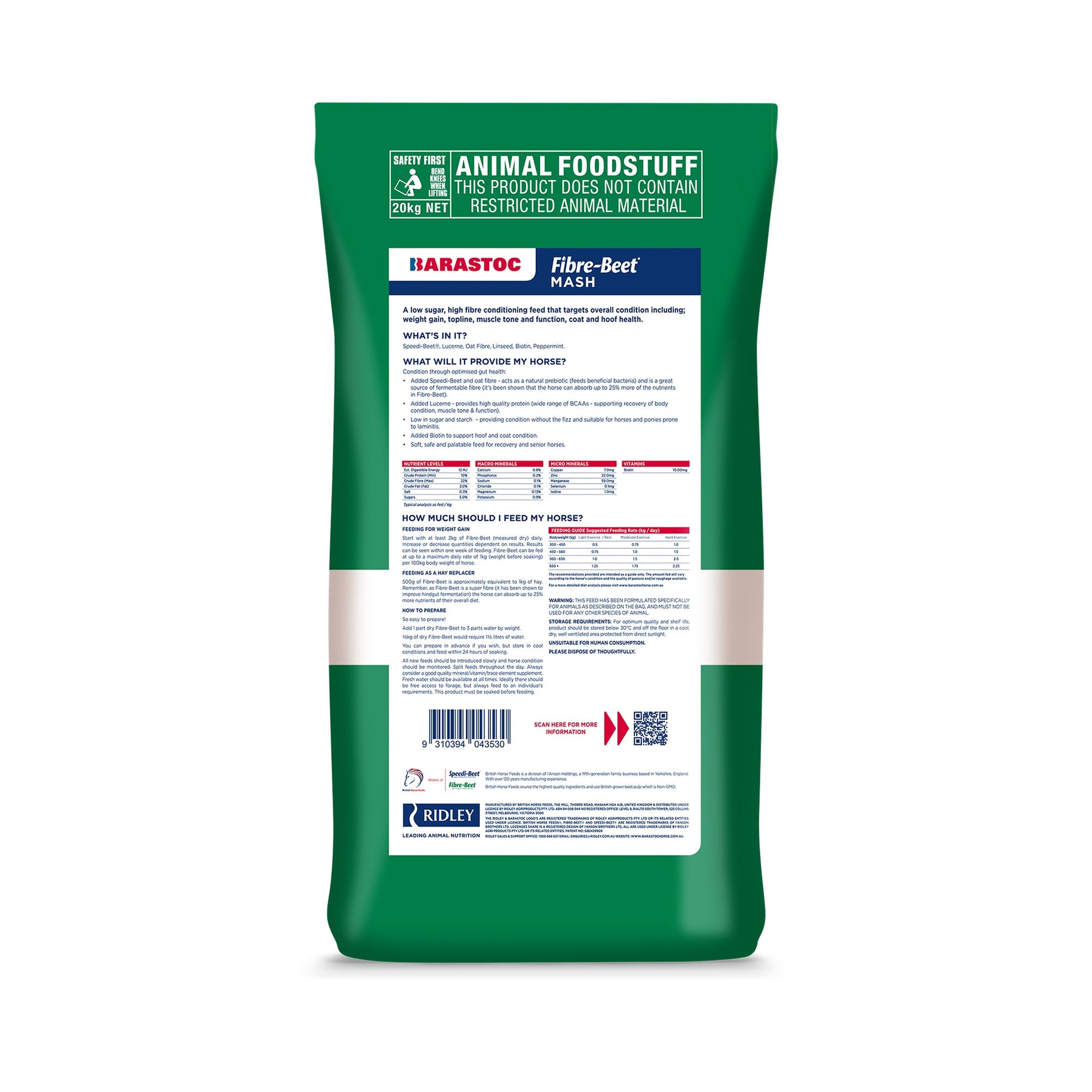 Barastoc Fibre-Beet Mash is a low sugar and starch, high fibre conditioning feed that targets overall condition through optimal gut health including; weight gain, topline, muscle tone and function, coat and hoof health.