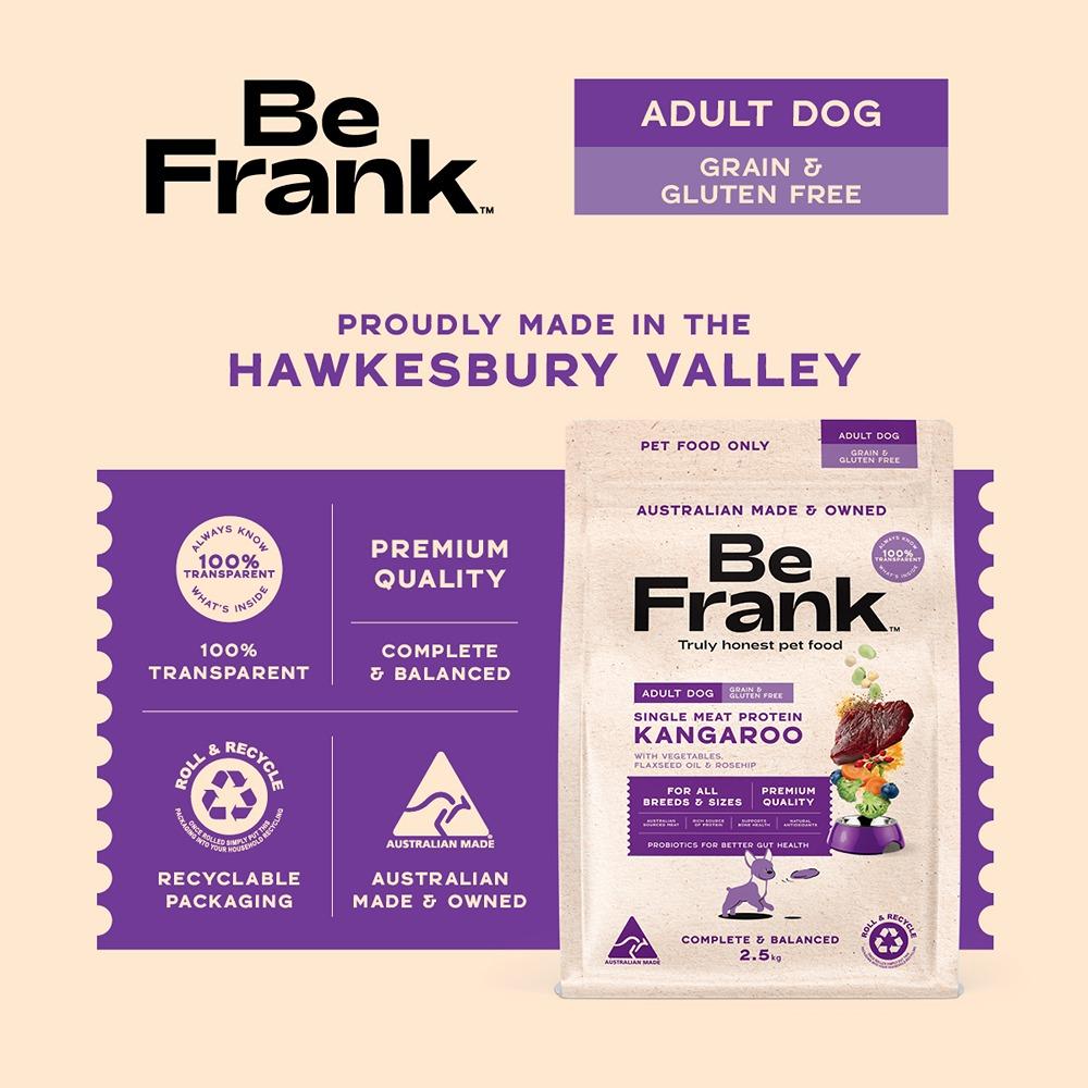 Our Kangaroo formula offers a single protein option that dogs of all breeds will love. Kangaroo is a lean protein, a rich source of iron loaded with the essential vitamins, crucial for muscle development. We've gone the extra mile to ensure complete transparency in our ingredients, so you can trust that every bite is packed with wholesome goodness. This grain free recipe is specially designed for adult dogs, with superfoods for natural antioxidants and probiotics for better gut health.