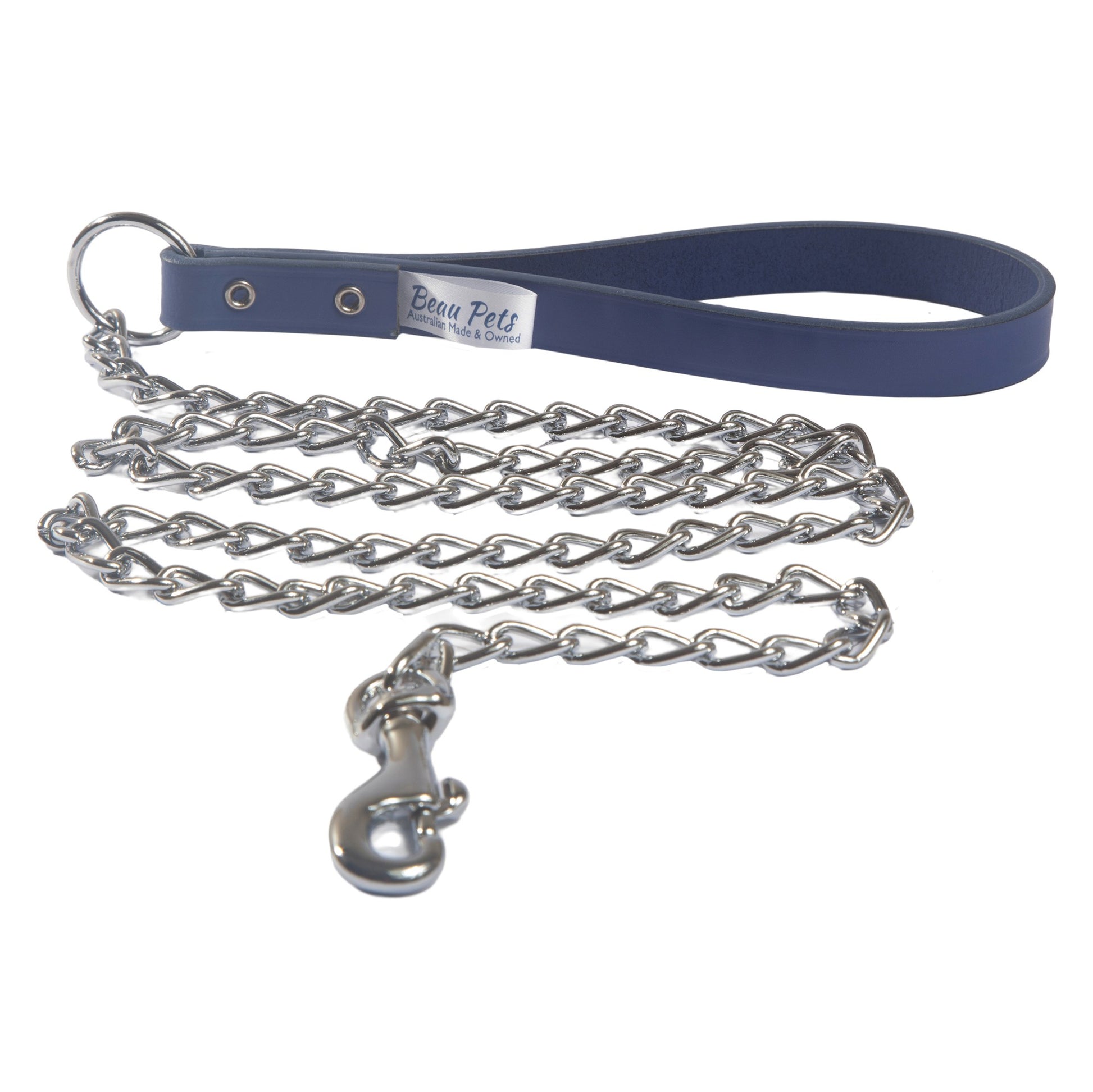 Beau Pets Chain Lead with Leather Handle 2.5mm x 120cm