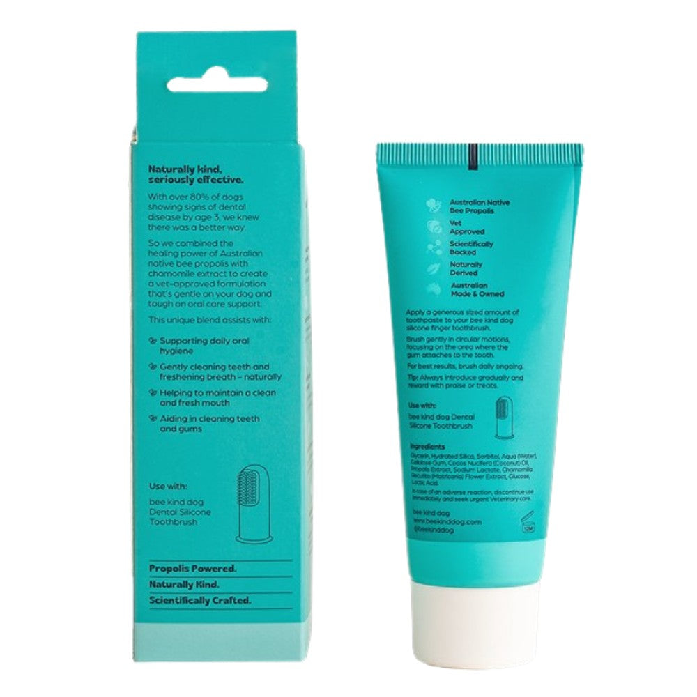 Bee Kind Dog Dental Toothpaste is a natural, vet-approved toothpaste for dogs of all life stages, designed to help maintain clean teeth and a fresher smile as part of their regular brushing routine. Combining Australian Native Bee Propolis with soothing chamomile extract, it supports your dog’s dental health in a gentle way that fits easily into at-home care between vet check-ups.