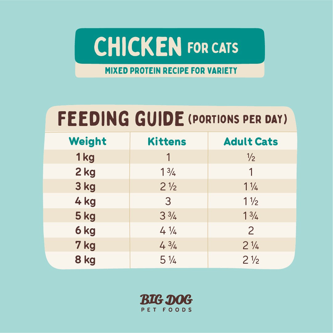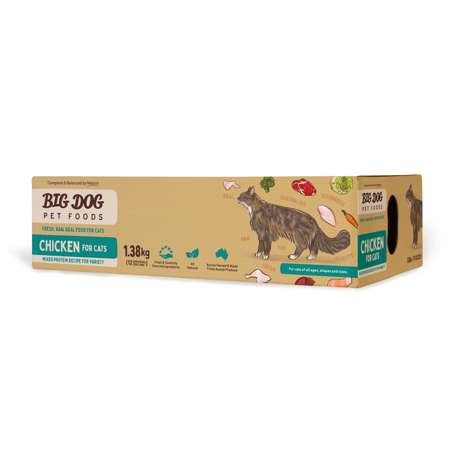 Big Dog's Chicken for Cats is a mixed protein recipe with the main protein source being chicken. This recipe contains the benefit of lean muscle meat, vitamin and mineral-rich offal, calcium-rich raw bone powder as well as biologically appropriate amounts of vegetables, whole eggs and kelp, just to name a few. Your cat will be feline fine with Big Dog's Chicken for Cats!