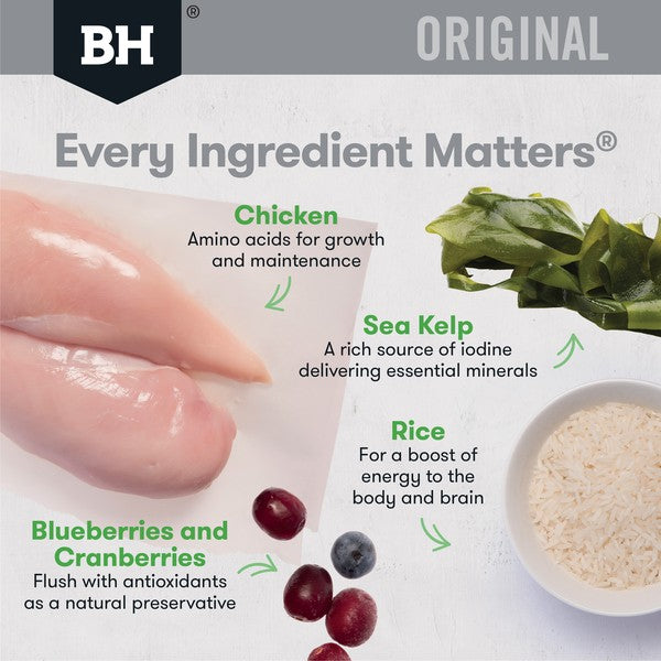 Black Hawk Chicken & Rice contains a deliciously lean and highly digestible chicken-based protein source, packed with amino acids which are essential for strong muscles. The recipe is formulated specifically with ingredients that matter, like Australian grown oats and rice for a boost of energy to the body and brain, blueberries and cranberries as natural antioxidants to contribute to a healthy immunity, as well as natural prebiotics to support digestion. The formula also contains glucosamine and chondroitin to help support active joints providing complete and balanced nutrition for your pet.