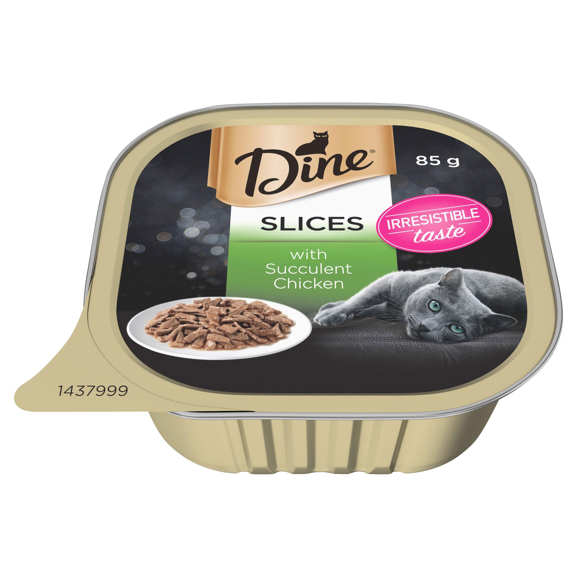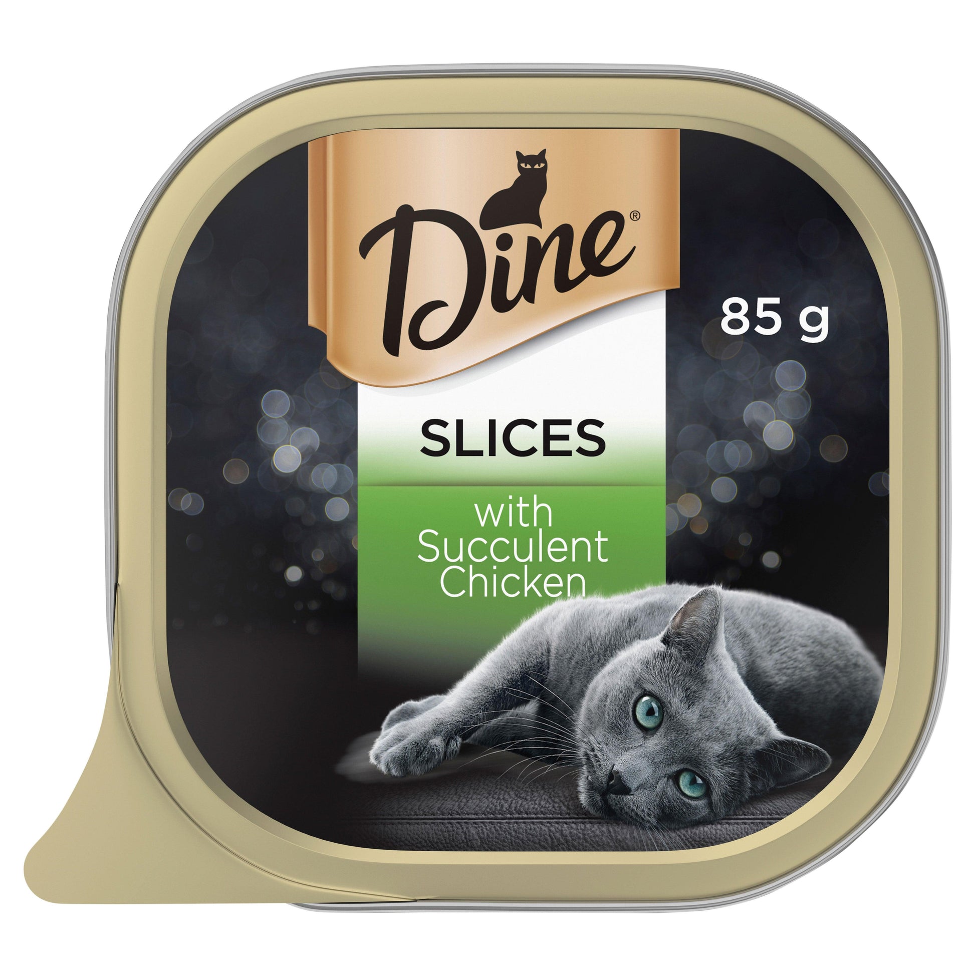 Effortless, elegant and supremely confident, cats are the masters of seduction. Their abundant natural charm is never more beautifully deployed than when they want something from you. The DINE brand includes gorgeous food designed to tempt the feline senses of both you and your cat, enabling you to turn your mealtimes into a delightful game of mutual seduction. Explore DINE Slices with Succulent Chicken. Discover our deluxe medley of tender slices in a mouth-watering gravy for cats.