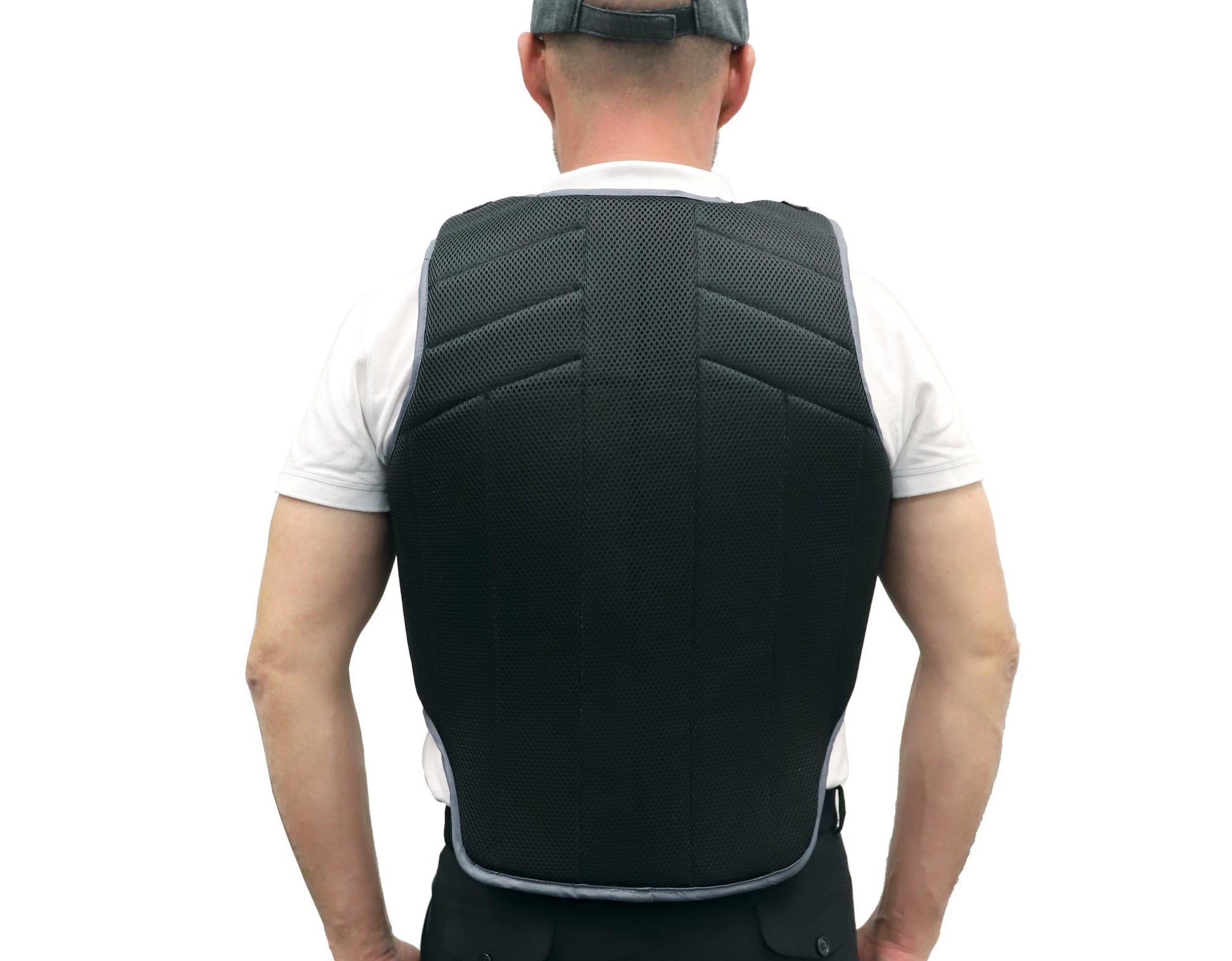 Supra-flex small panels body protector with a full mesh outer cover for maximum air flow. Lightweight, comfortable and flexible. Has adjustable shoulders and adjustable side panels for correct fit. Safety approved to BETA Level 3 Standard: EN13158 Purple tag. Suitable for all equestrian disciplines.