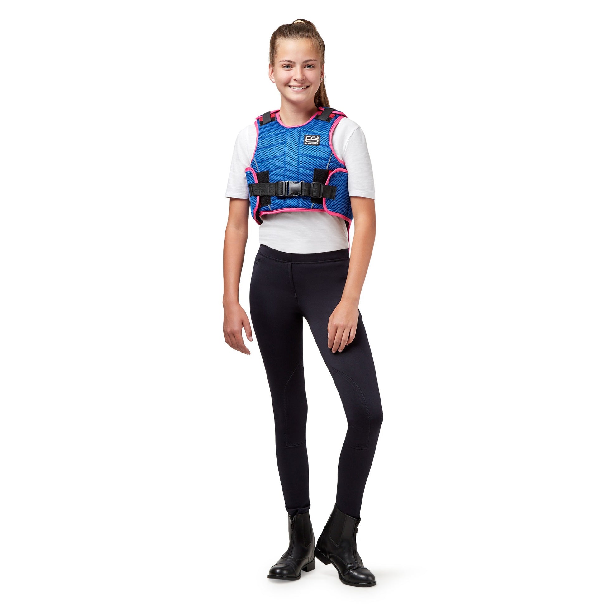 Supra-flex small panels body protector with a full mesh outer cover for maximum air flow. Lightweight, comfortable and flexible. Has adjustable shoulders and adjustable side panels for correct fit. Safety approved to BETA Level 3 Standard: EN13158 Purple tag. Suitable for all equestrian disciplines.