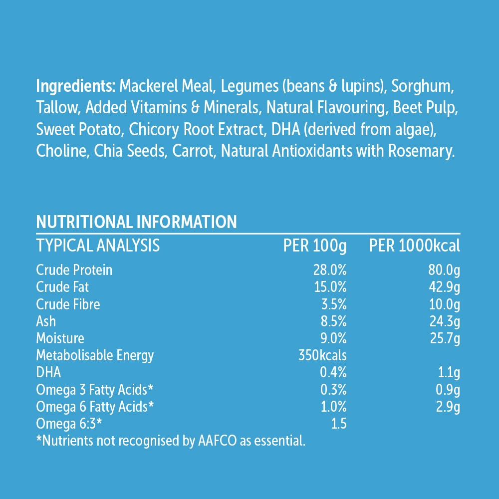 Glow is an Australian made pet food that your best friend deserves. Crafted from natural ingredients, their delicious recipes provide a balanced diet for your dog, giving them everything they need for a vibrant, healthy life. Glow Adult Australian Mackerel is formulated with locally sourced, protein rich whole mackerel along with carrots for healthy eyesight, green beans for a wholesome source of vegetable protein and sweet potato which is gentle on the digestive system.