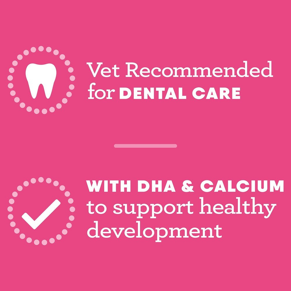 Greenies Puppy 6 Months+ Original Regular Dental Dog Treats are designed to support your growing puppy’s oral health while keeping their tail wagging with every chew. Made for puppies aged 6 months and older, these easy-to-digest treats gently clean teeth and freshen breath, helping to establish a healthy daily dental routine. Their soft, chewy texture is perfect for young dogs learning to chew, while added DHA and calcium help support brain development and strong teeth and bones.