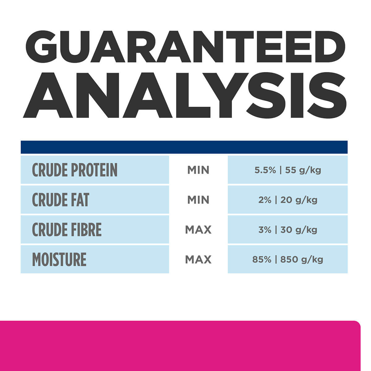 Hill's Prescription Diet GI Biome is a high-fibre wet cat food with natural prebiotics formulated to promote healthy stool and support overall digestive health. It’s made in the USA with global ingredients you can trust, and was developed specifically for GI care by Hill’s nutritionists and veterinarians. This digestive-care food is formulated to promote a urinary environment that reduces the risk of developing struvite and calcium oxalate crystals.