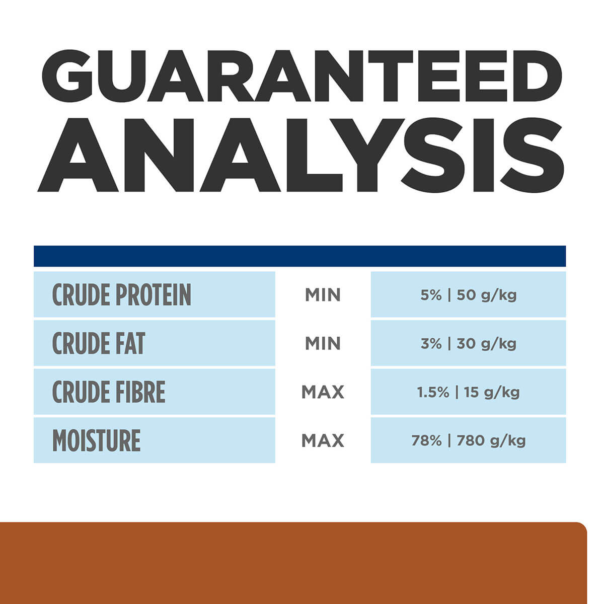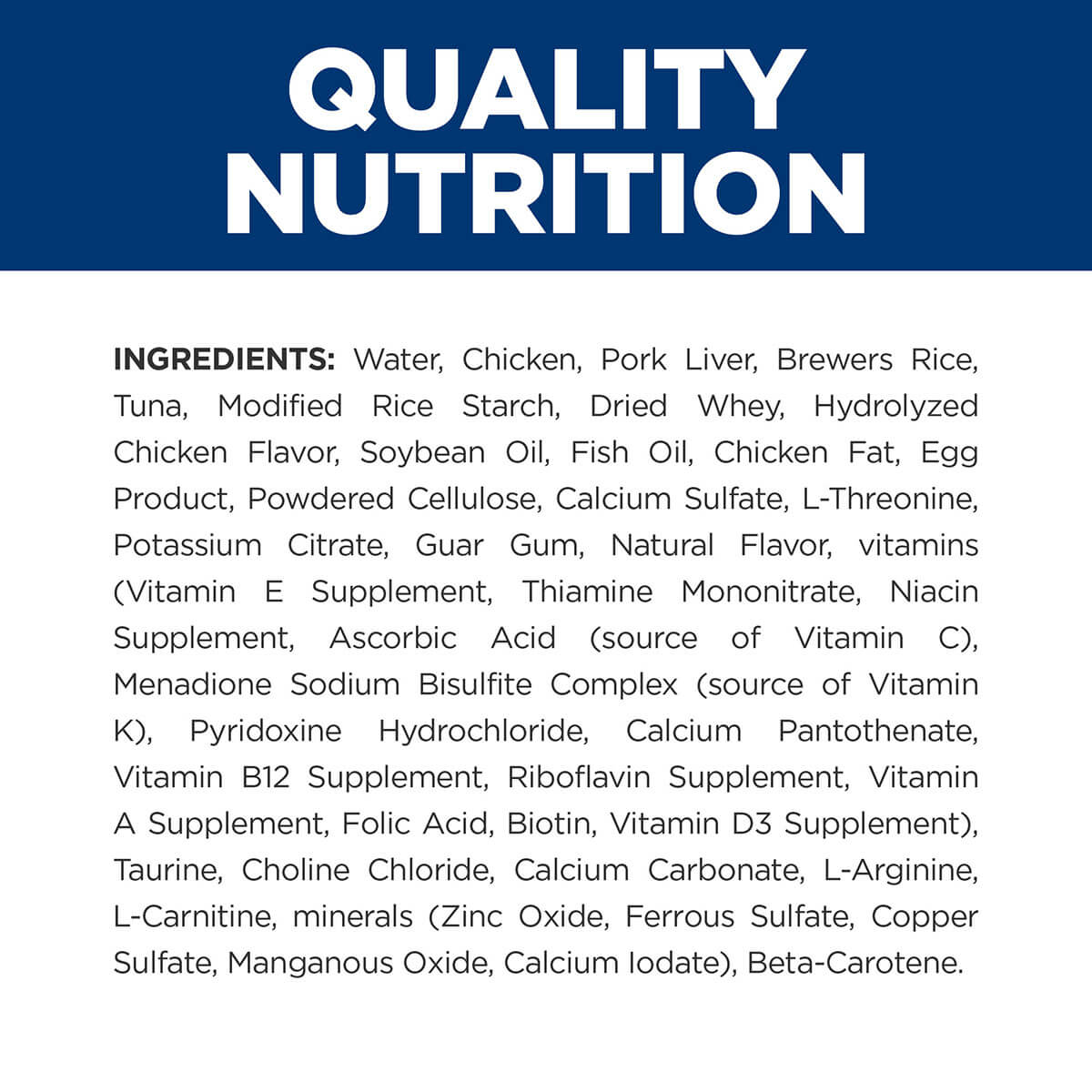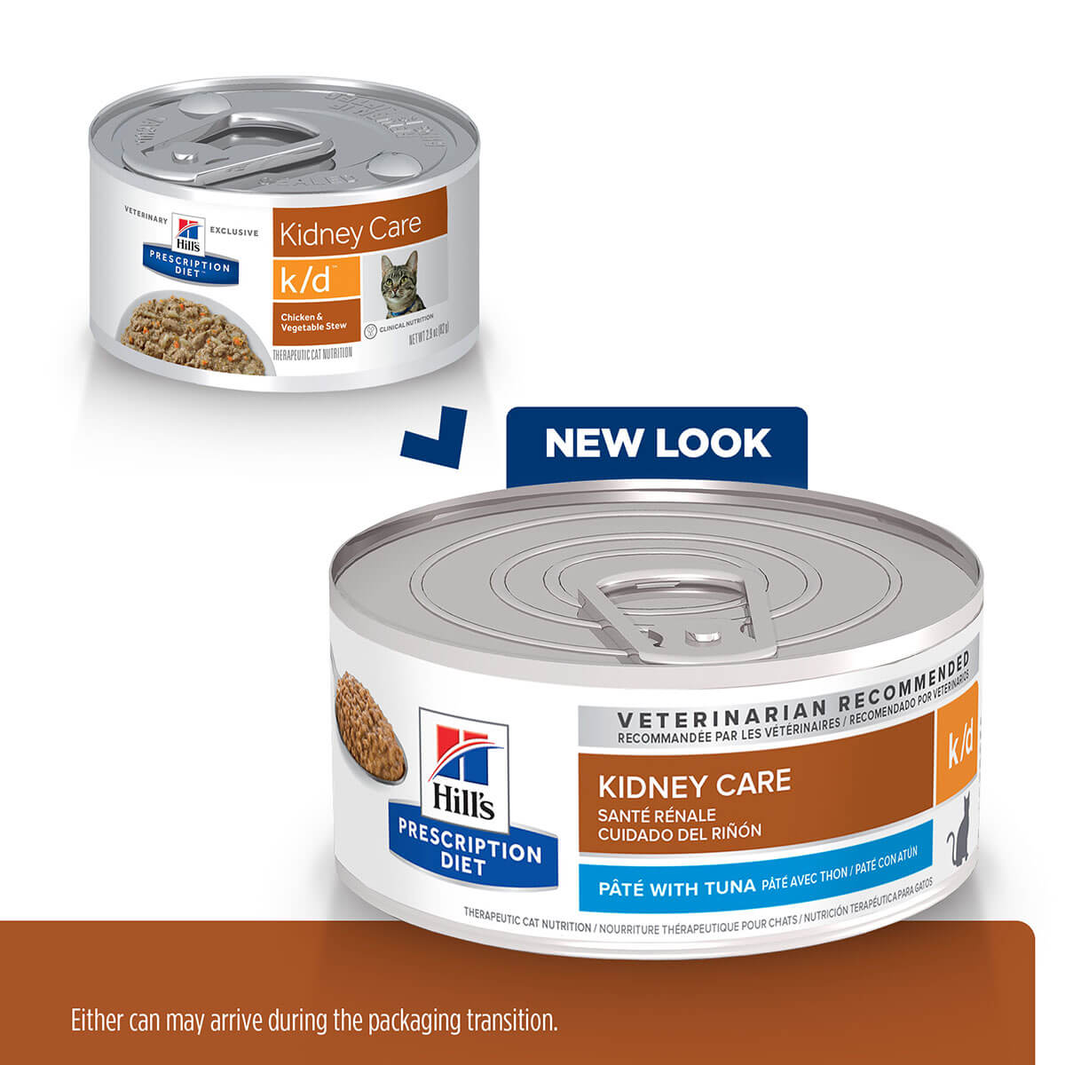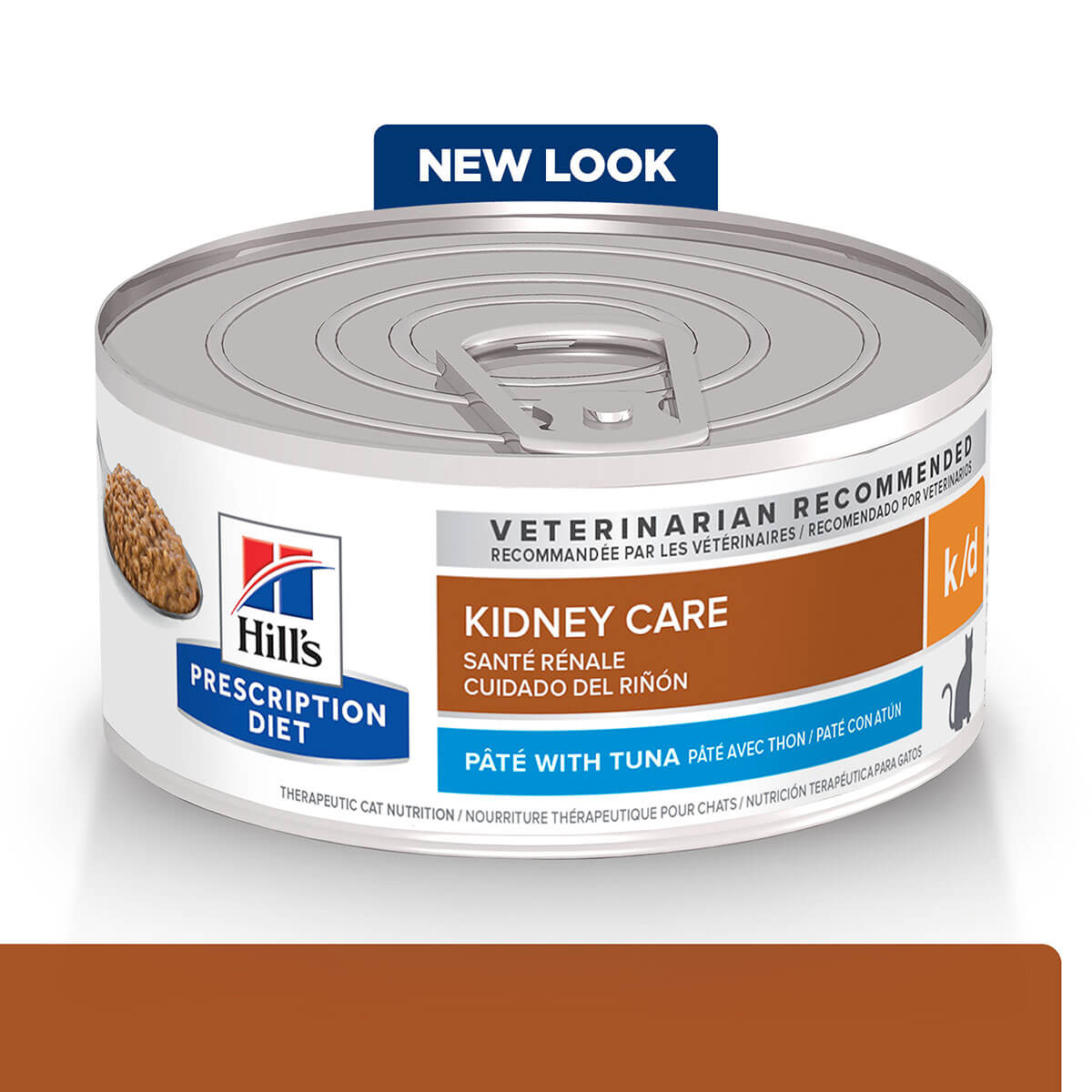 Hill's Prescription Diet k/d Kidney Care with Tuna Wet Cat Food is clinical nutrition proven to improve and lengthen quality of life in cats. It’s made in the USA with global ingredients you can trust, and was developed by Hill’s nutritionists and veterinarians. This food contains a high level of essential amino acids, the building blocks of muscle protein. It is also formulated to promote a urinary environment that reduces the risk of developing struvite and calcium oxalate crystals.