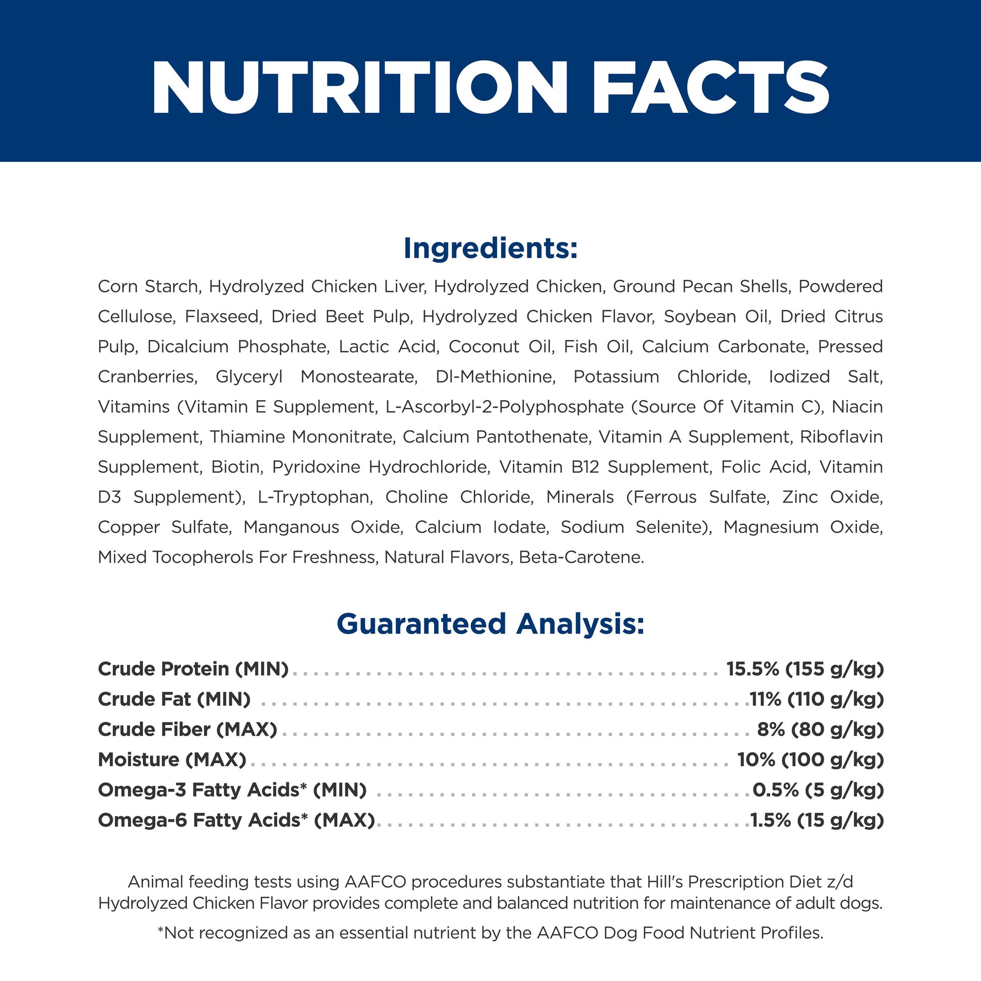Hill's Prescription Diet z/d is clinical nutrition proven to help avoid skin and digestive signs of adverse food reactions in dogs. It’s made in the USA with global ingredients you can trust, and was developed by Hill’s nutritionists and veterinarians. This nutrition includes natural fibre to help normalise stool. Formulated without additives known to cause food allergies. Also promotes a urinary environment that reduces the risk of developing struvite and calcium oxalate crystals.