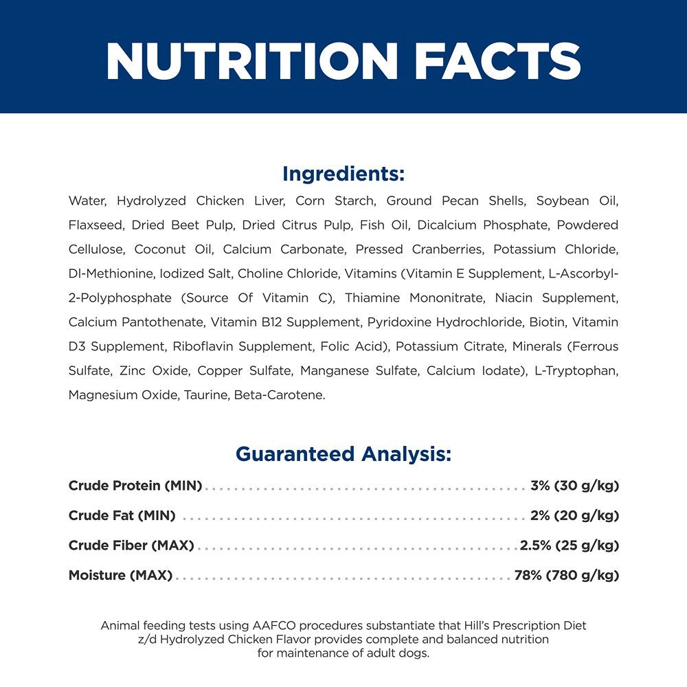 Hill's Prescription Diet z/d Skin/ Food Sensitivities is clinical nutrition proven to help avoid skin and digestive signs of adverse food reactions in dogs. It’s made in the USA with global ingredients you can trust, and was developed by Hill’s nutritionists and veterinarians. This nutrition includes natural fibre to help normalise stool. Formulated without additives known to cause food allergies. Also promotes a urinary environment that reduces the risk of developing struvite and calcium oxalate crystals.