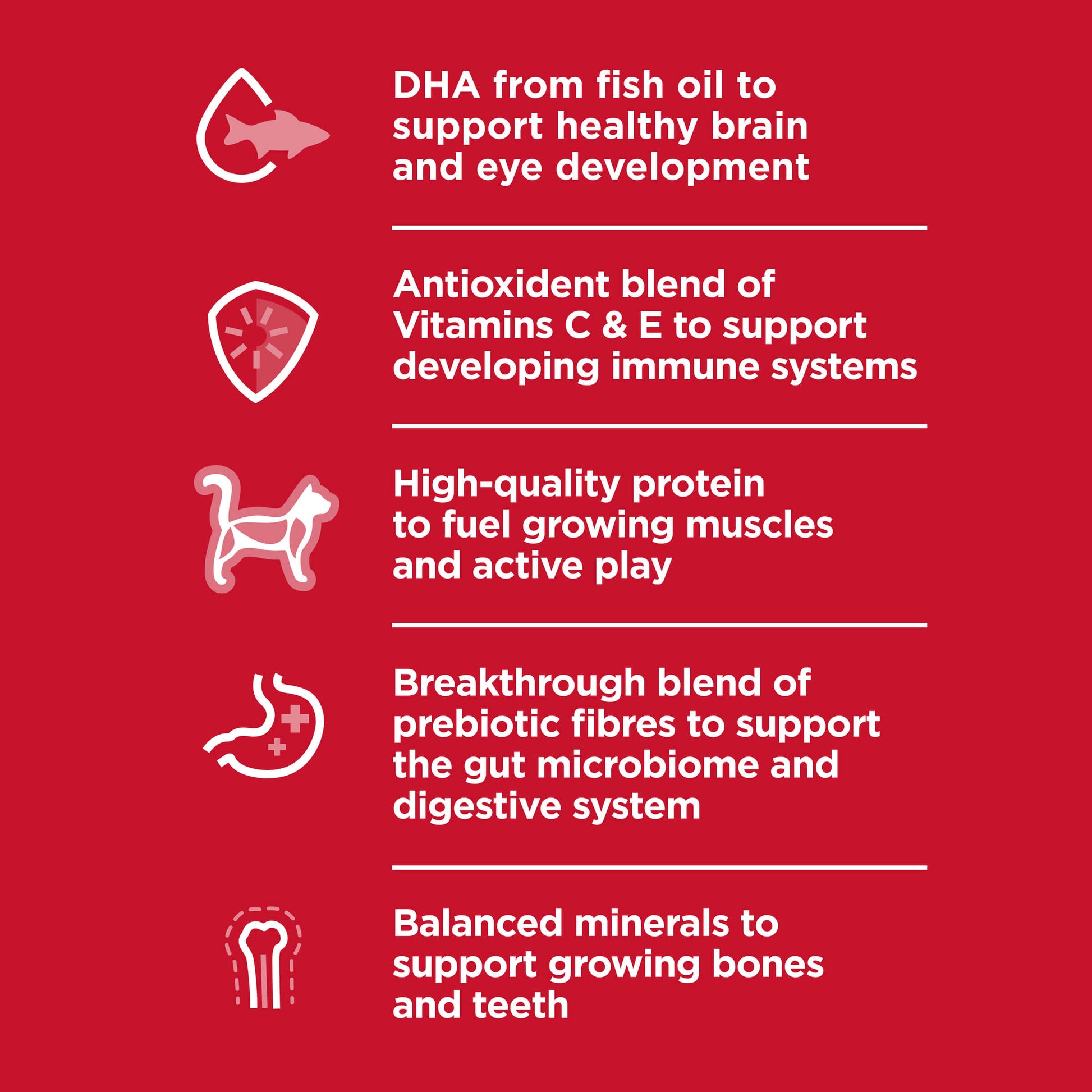 Your little kitten needs premium pet nutrition that can keep up with their active lifestyle. That's why Hill's Science Diet Kitten Healthy Cuisine Roasted Chicken & Rice Medley wet food uses high-quality ingredients to ensure availability of key nutrients and proteins for your young cat. Carefully formulated for the developmental needs of kittens, this cat food made with natural ingredients and real chicken provides high-quality protein that will support a kitten's muscle growth and development. Antioxidants, vitamin C and vitamin E all help support your little kitty's immunity, while a balanced set of minerals promote kidney and heart health.