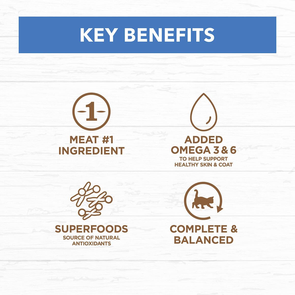 Superfoods including Blueberries and Pumpkin are added as a source of antioxidants, and fish oil and flaxseed oil deliver Omega 3 & 6 to help support healthy skin & coat.