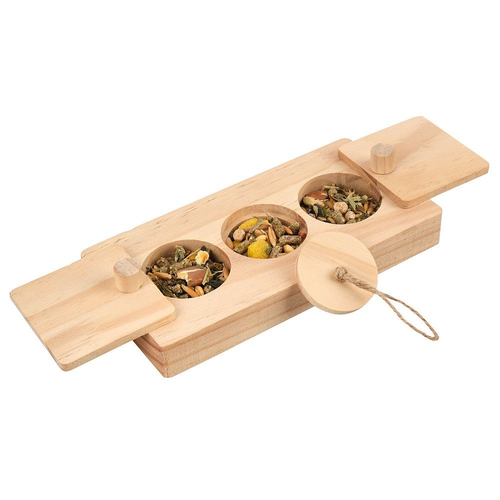 The Lexi & Me Slide & Pull Wooden Snack Puzzle is a fun, mentally enriching activity for small animals like rabbits and guinea pigs. Featuring two compartments that are accessed by sliding the covers and a centre pull to reveal hidden treats, this puzzle encourages natural foraging instincts. It not only stimulates your pet’s mind but also supports oral and dental health as they interact with the puzzle for snack time.