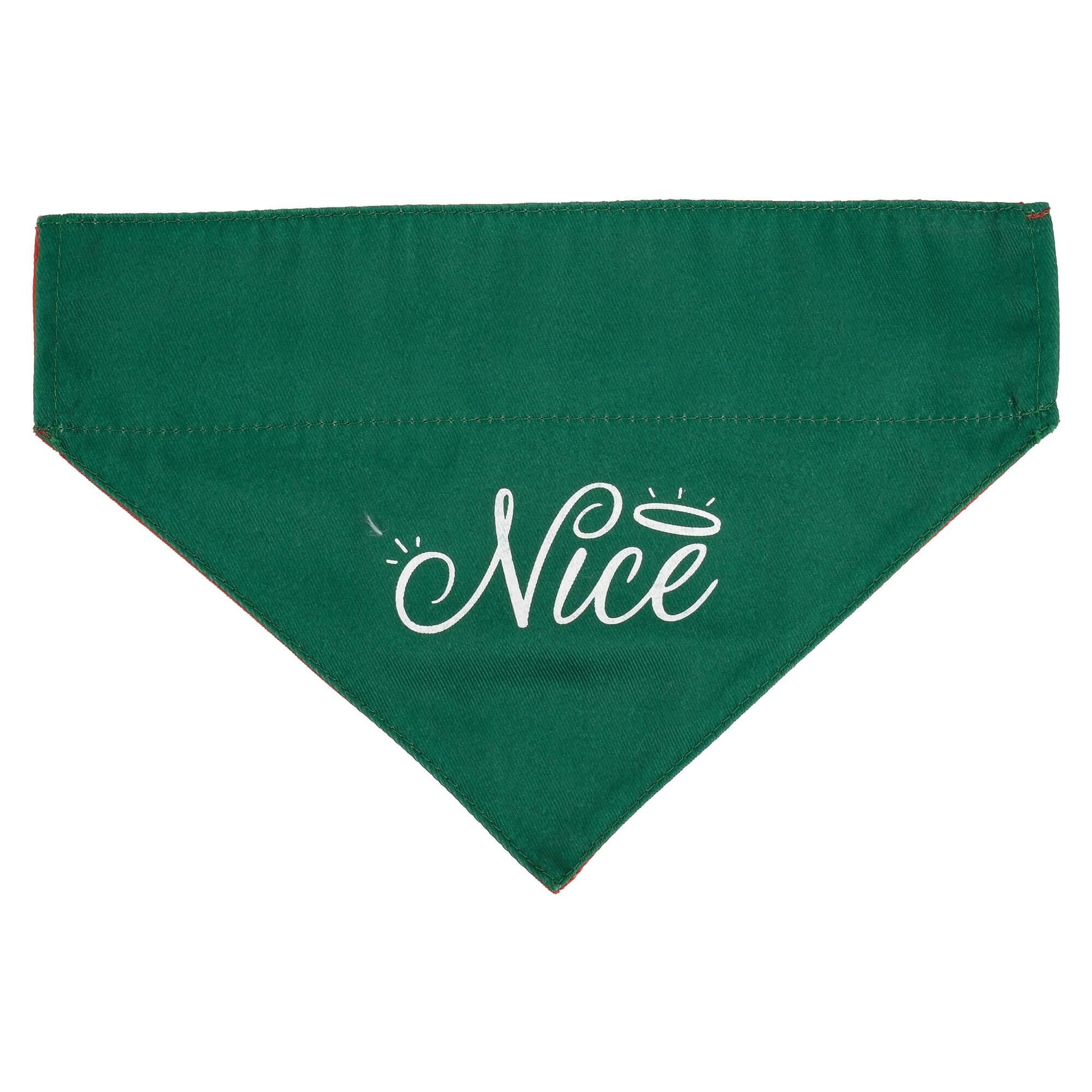 Dress your pup in holiday cheer with the Petstock Foundation Naughty or Nice Bandana. This reversible design easily slips onto your dog's collar for a comfortable fit. 100% of profits support the Petstock Foundation, spreading joy this season!
