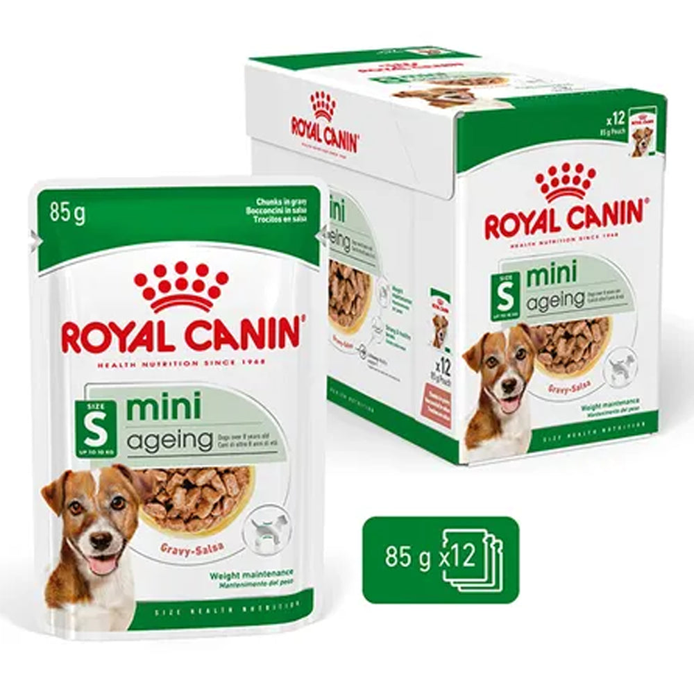 Suitable for small dogs over 12 years of age that weigh up to 10kg, Royal Canin Mini Ageing 12+ in Gravy is specially formulated with all the nutritional needs of your mini dog in mind.