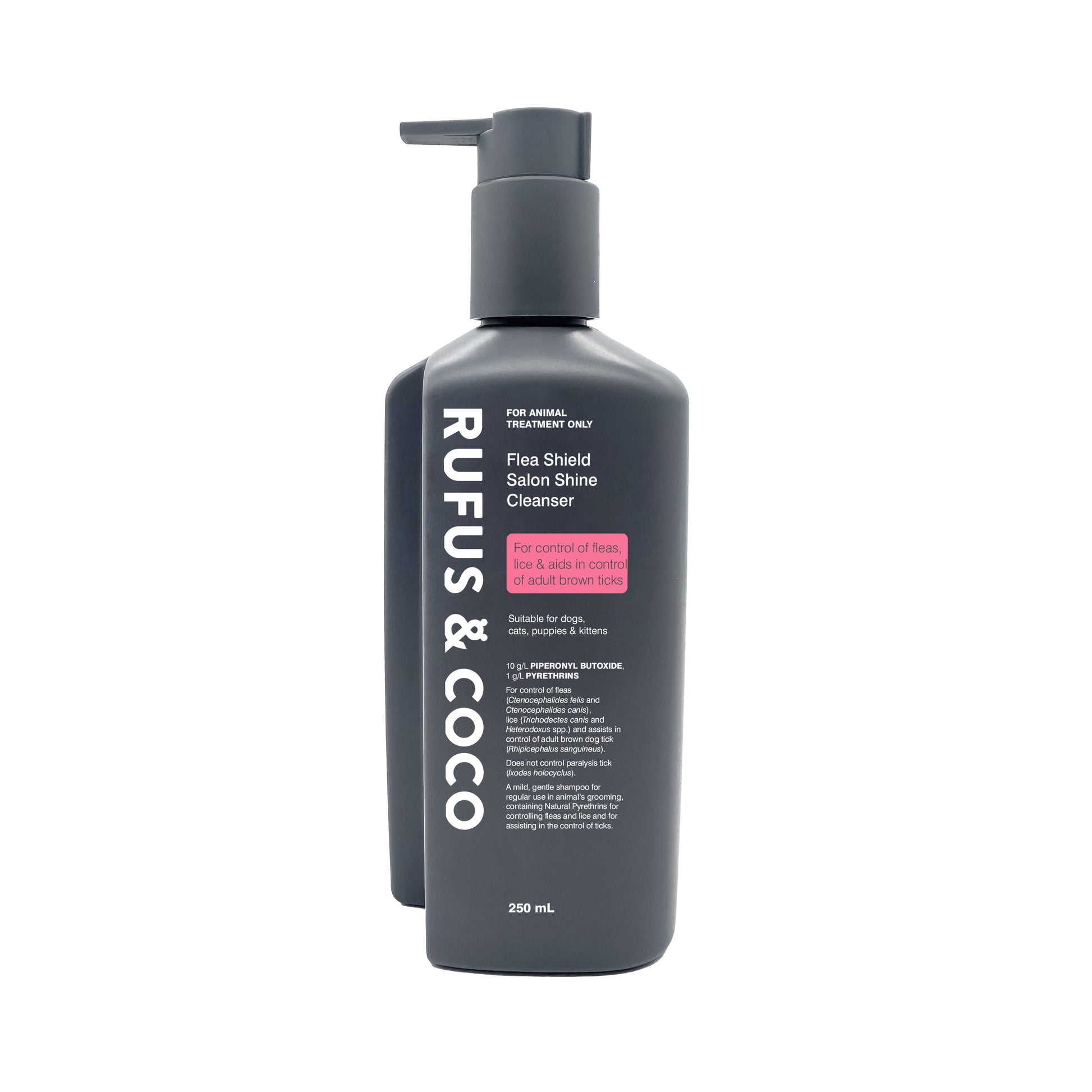 Rufus & Coco Flea Shield Salon Shine Pet Cleanser is a premium wash that offers protection and shine in one easy step. Formulated to help control fleas, lice, and aid in the control of adult brown ticks, it also removes dirt, oils, and odours to leave your pet’s coat glossy, soft, and healthy. Safe for both dogs and cats, this gentle formula makes bath time simple, effective, and soothing.