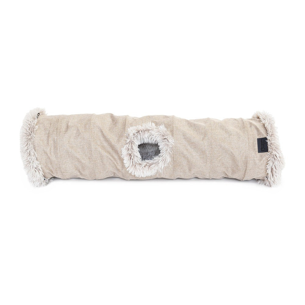 Designed to ignite your cat's natural instincts to stalk and hunt, the Superior Pet Goods Cat Tunnel in Aspen also provides a calming and peaceful retreat for a nap. Lined with sensory long pile faux fur with an enticing crinkly inner lining your feline friend will enjoy endless entertainment and relaxation. A midplaced peephole provides a fun window for games of peek-a-boo and a sneaky entrance and exit.