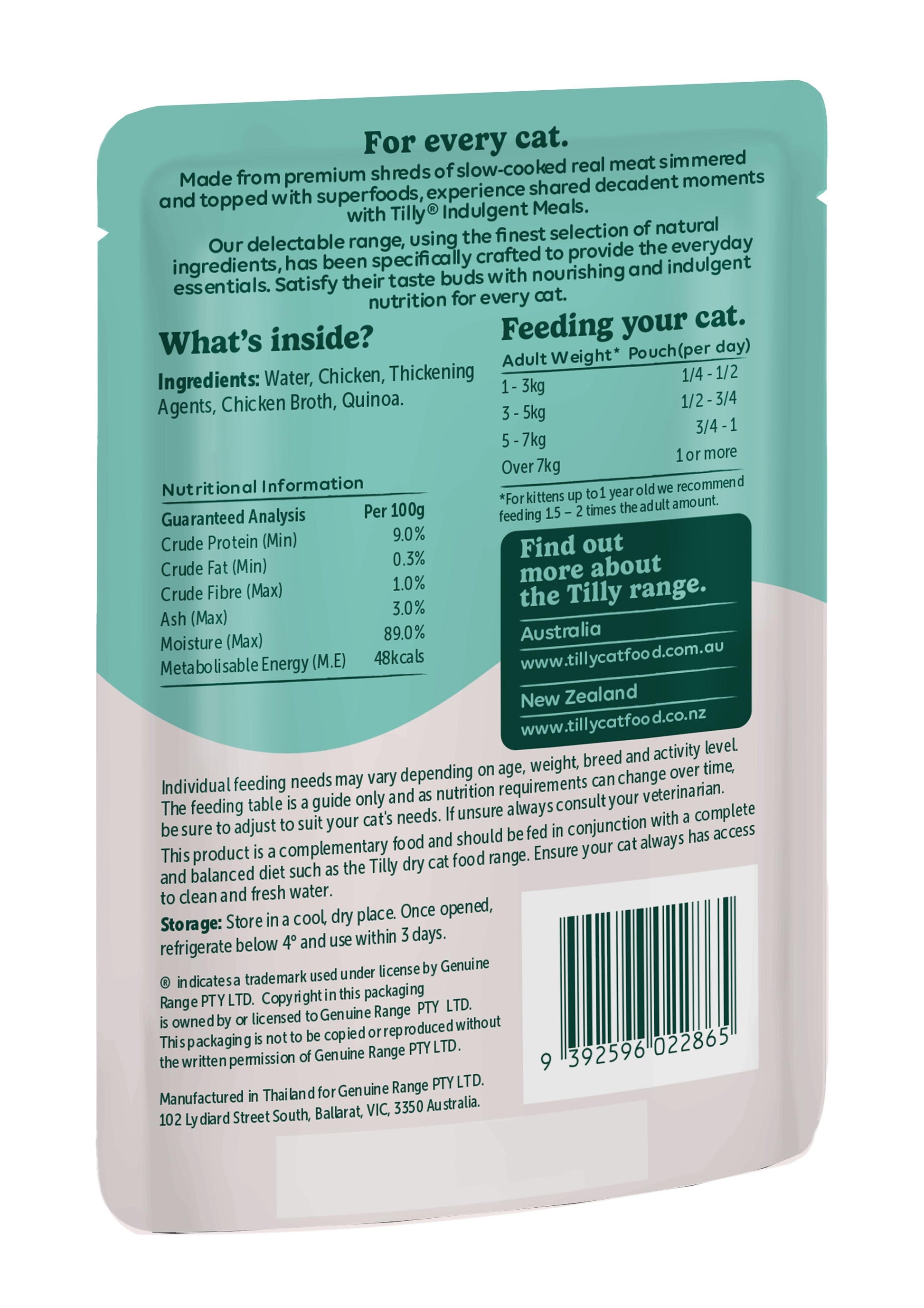 Made from premium shreds of slow-cooked chicken simmered and topped with quinoa, experience shared decadent moments with Tilly Indulgent Meals.