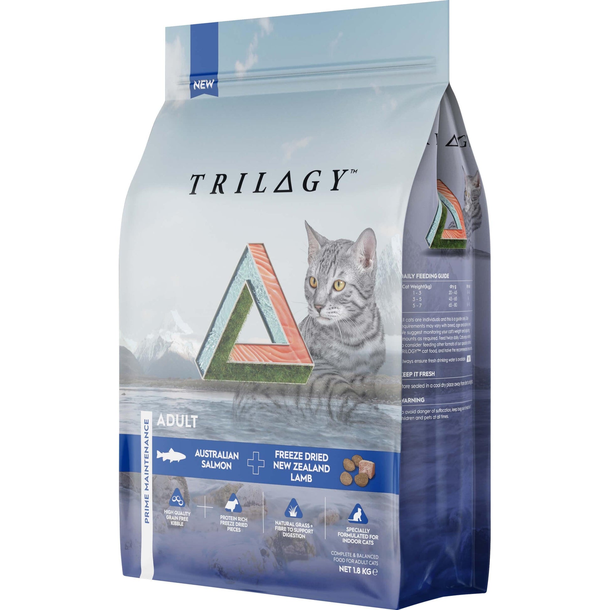 TRILOGY Australian Salmon and Freeze Dried New Zealand Lamb Pieces is formulated to meet the nutritional levels established by the AAFCO Cat Food Nutrient Profiles for Adult Cats.