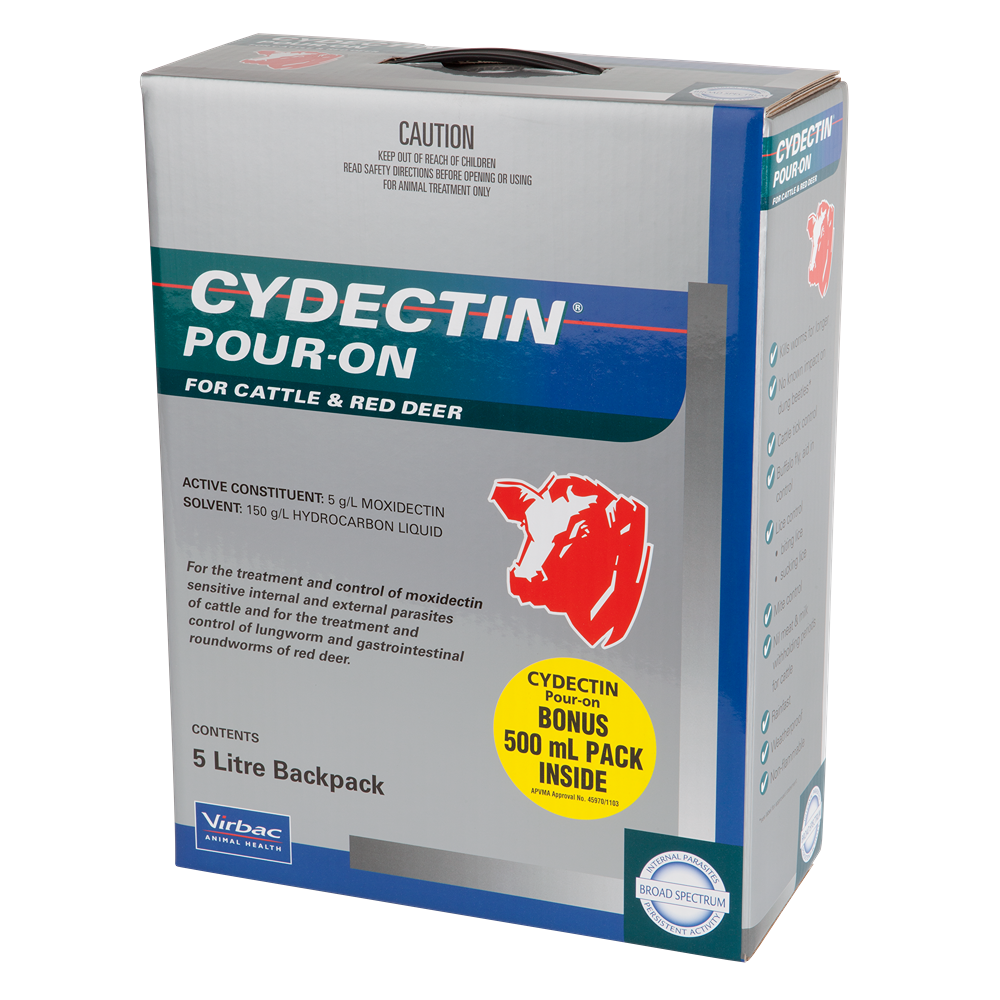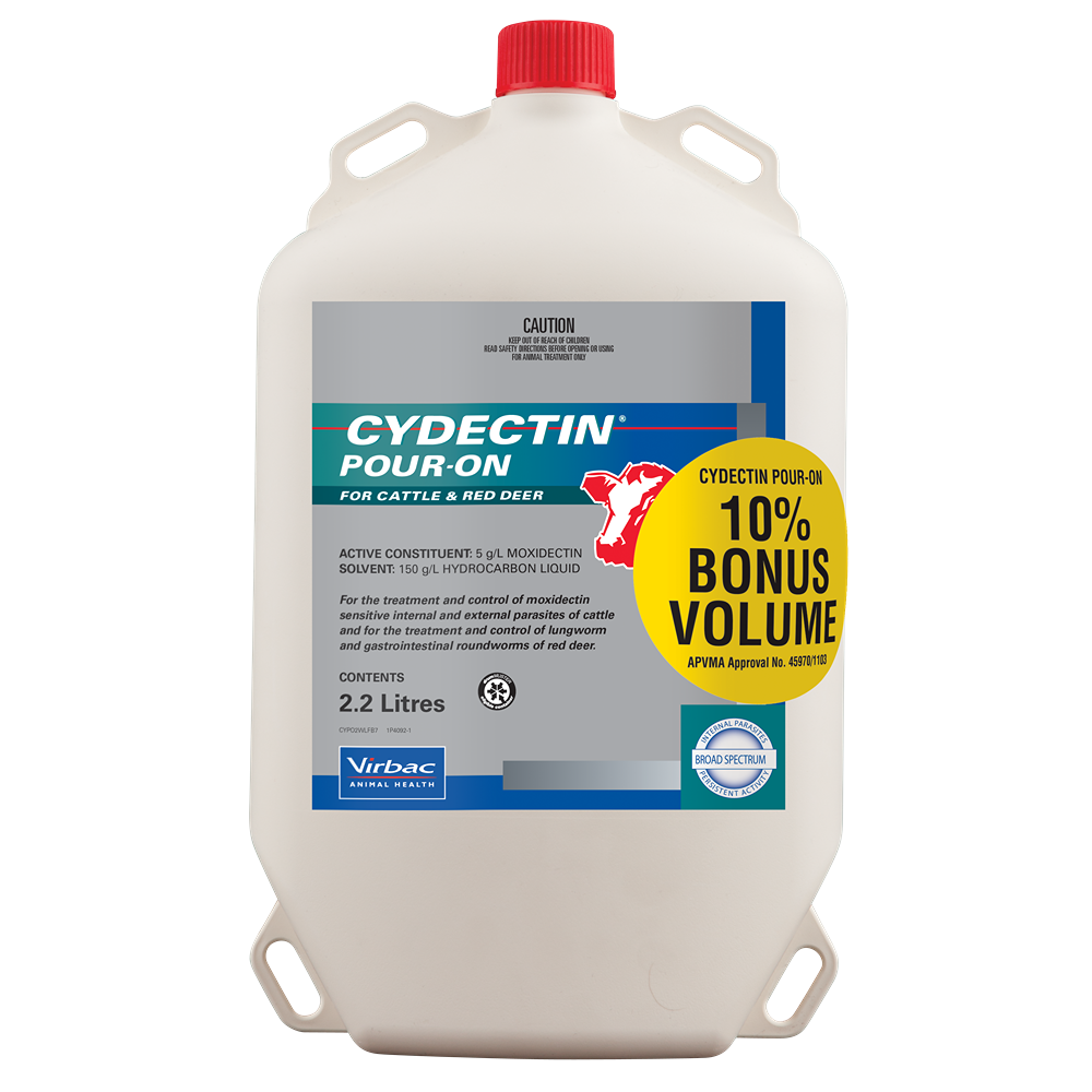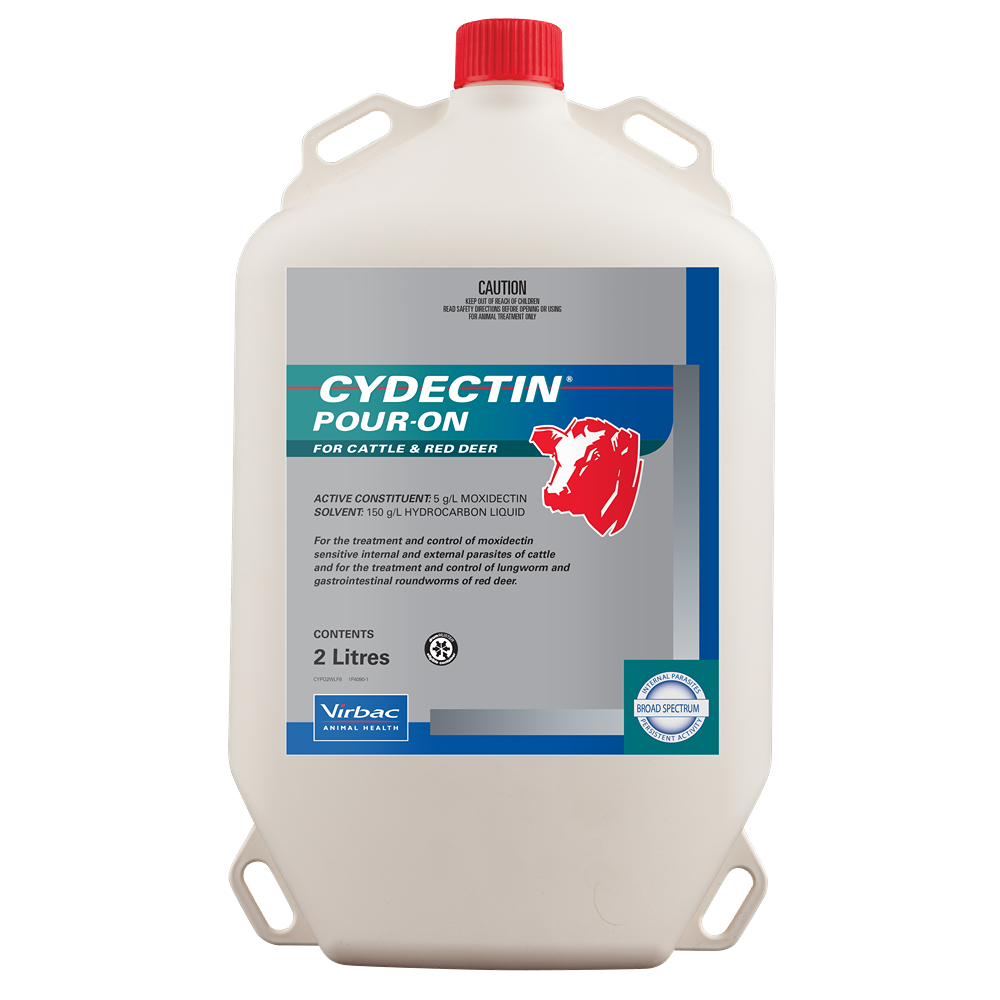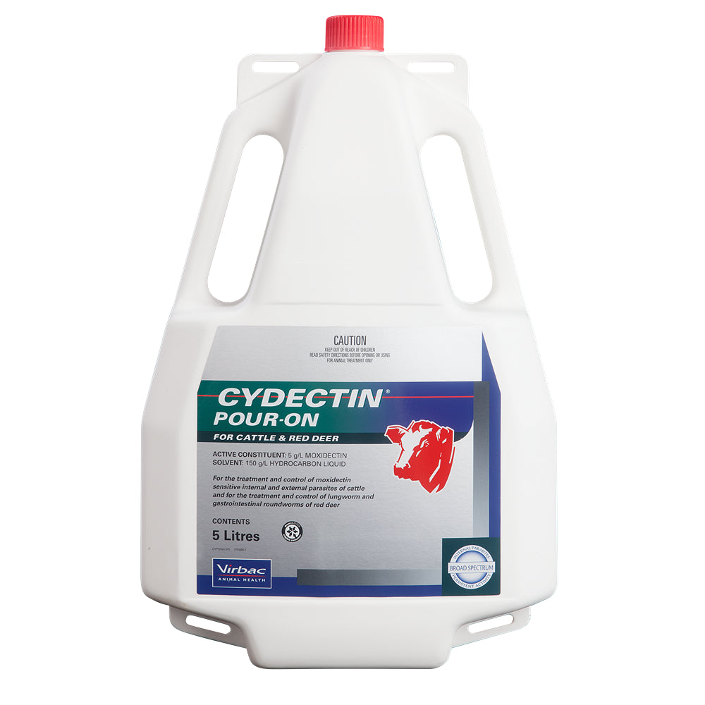 Cydectin Pour-On for Cattle & Red Deer harnesses the potency and durability of moxidectin, a trusted "mectin" compound, in a convenient pour-on formula. It offers comprehensive control of both internal and external parasites, making it suitable for cattle and red deer. This product's persistent protection spans various parasite species, including roundworms, lungworm, cattle ticks, lice, and mites. Its extended activity helps prevent re-infection and tick development, while also aiding in the control of buffalo flies. Cydectin is favored for its reliability, broad-spectrum efficacy, and minimal impact on beneficial dung beetles, enhancing overall productivity and pasture health.