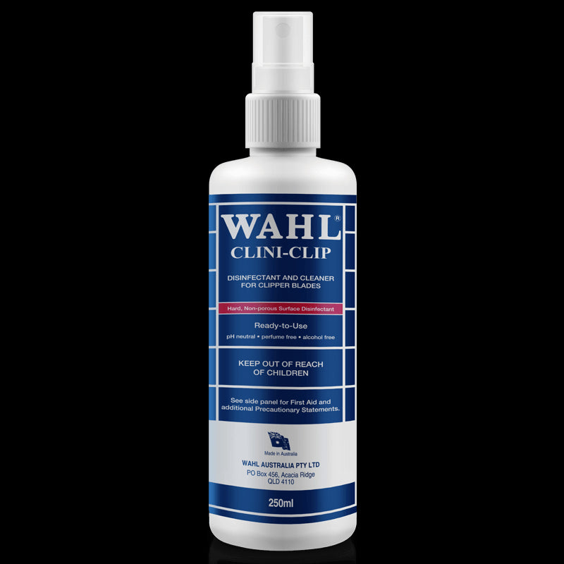 Disinfectant & Cleaner for Clipper Blades & Guides.Wahl Clini-Clip Disinfectant Spray is intended for professional use only and is designed to deliver the sharp performance that experts demand. When used as directed, this product effectively disinfects hard, non-porous surfaces such as those made of metals (aluminium, stainless steel, and chrome), as well as plastics.