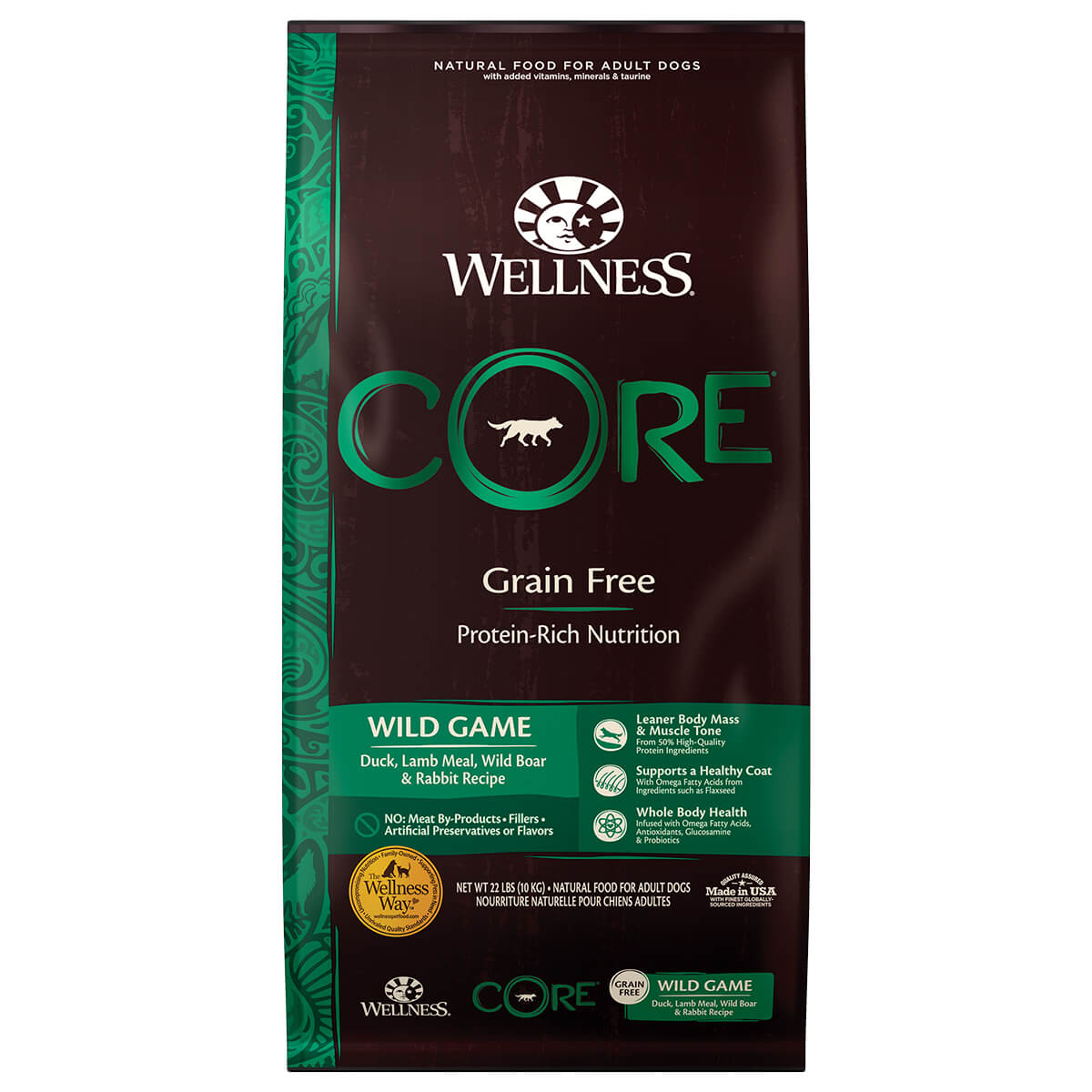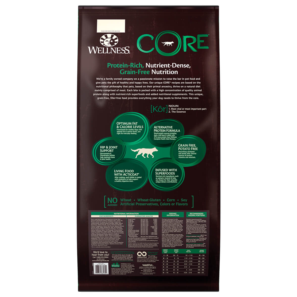 Wellness Core Grain-Free dry food for dogs is a premium-quality, complete and balanced diet that contains no by-products, wheat, corn, soy or other fillers, or artificial colours, flavours or preservatives. It provides advanced nutrition to support a lifetime of wellbeing for your dog.