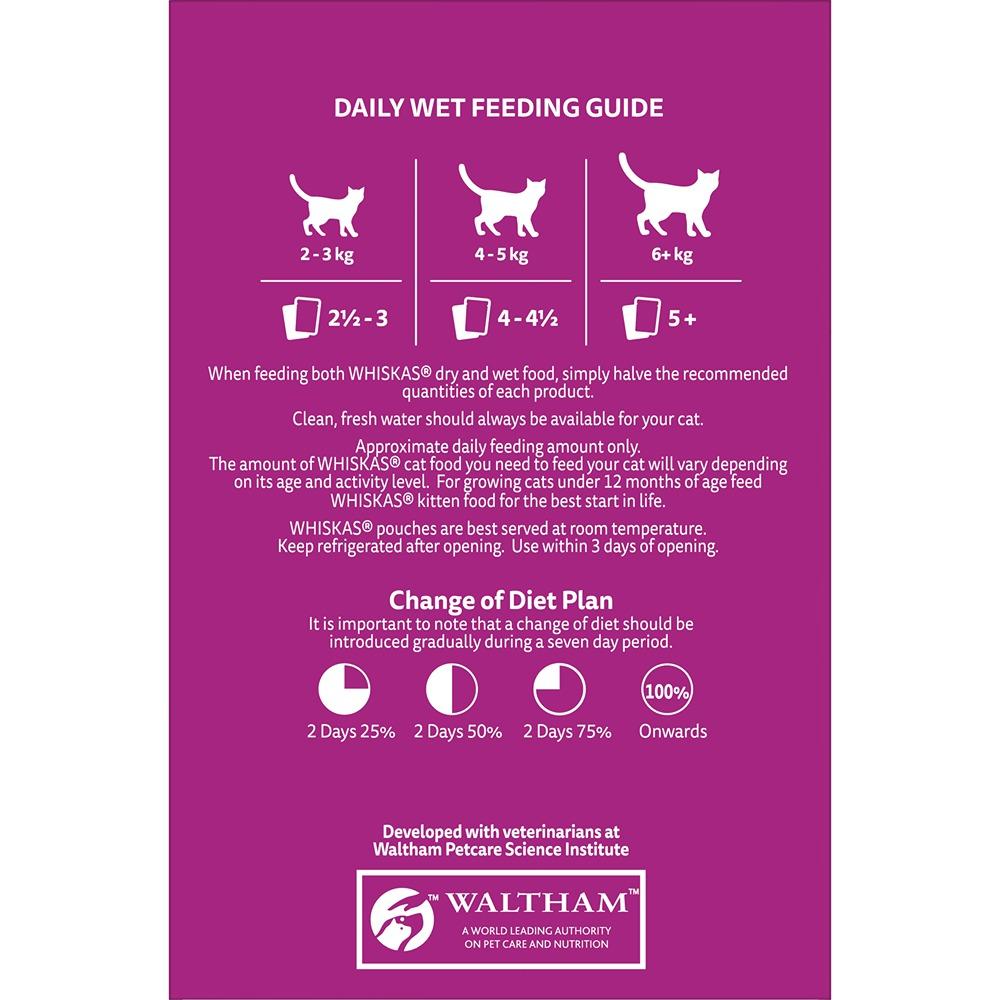 Whiskas make delicious, 100% complete and balanced recipes for cats at all stages of life.This complete and balanced wet food contains all the protein, vitamins, minerals and energy that your senior cat needs. Each pack includes three delicious recipes with a meat in gravy, gently cooked and sealed in a foil pouch for extra freshness.