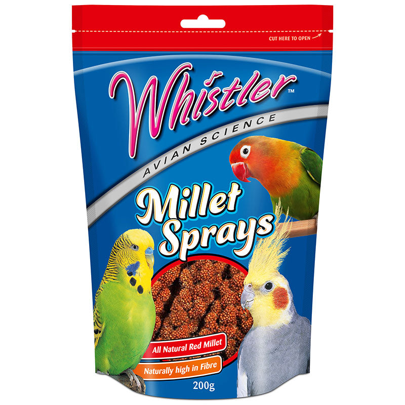 Whistler Natural Millet Sprays are meticulously harvested straight from the farm to your pet bird or garden Wildbirds. Whistler Natural Millet Sprays are bursting with natures goodness and are rich in dietary fibre & protein and low in saturated fat; they make for a healthy, terrific foraging treat all birds will love, all year round!